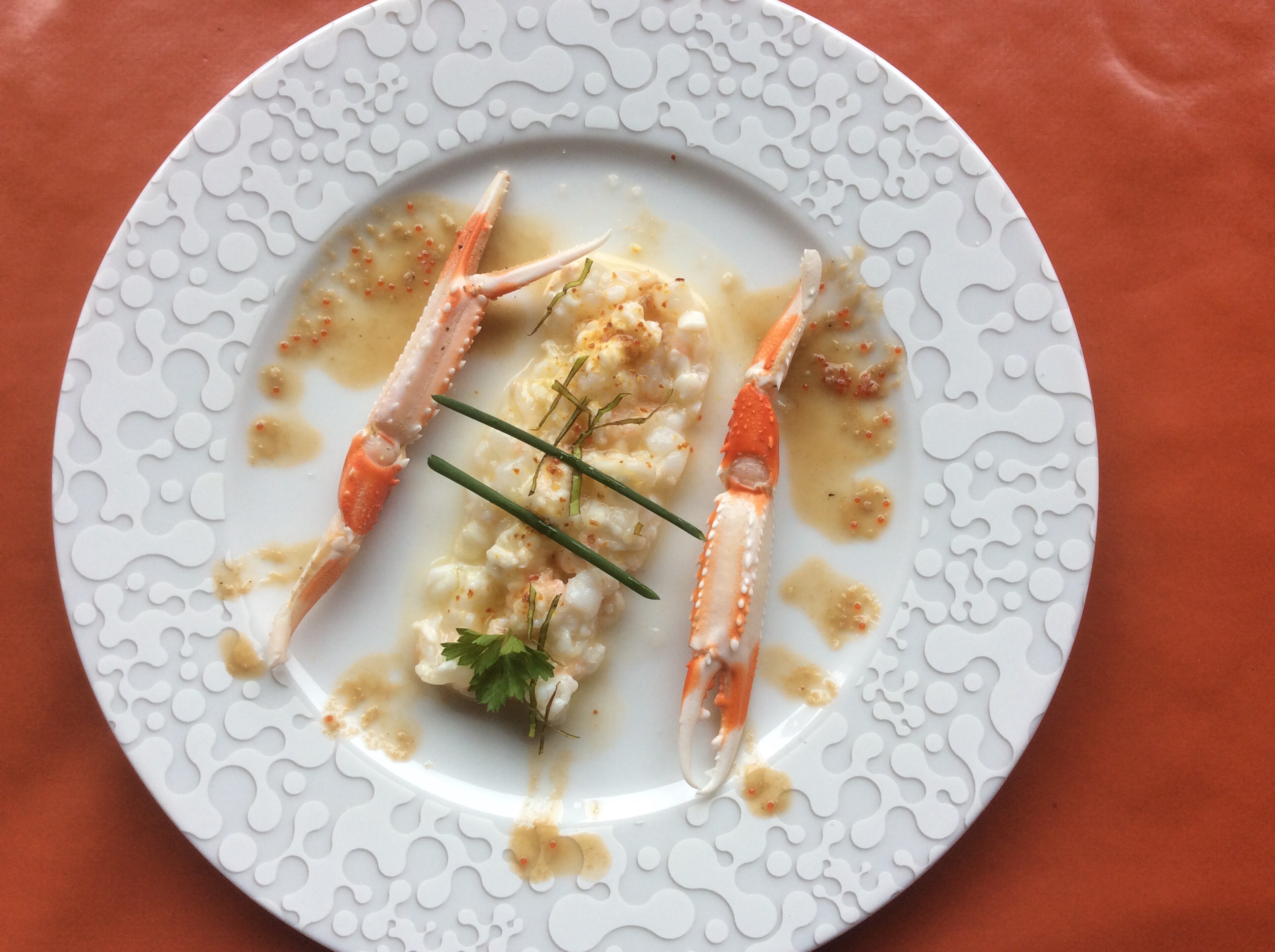 Ajouter le basilic ciselé , les pinces, un peu de piment d’espelette et ajouter un peu de fumet dessus et autour.