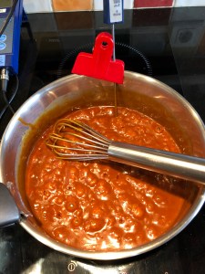 Une fois toute la crème incorporée, continuez à cuire jusqu’à 114 °C pour épaissir le caramel.