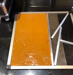 Versez le caramel dans un cadre posé sur un tapis silicone.