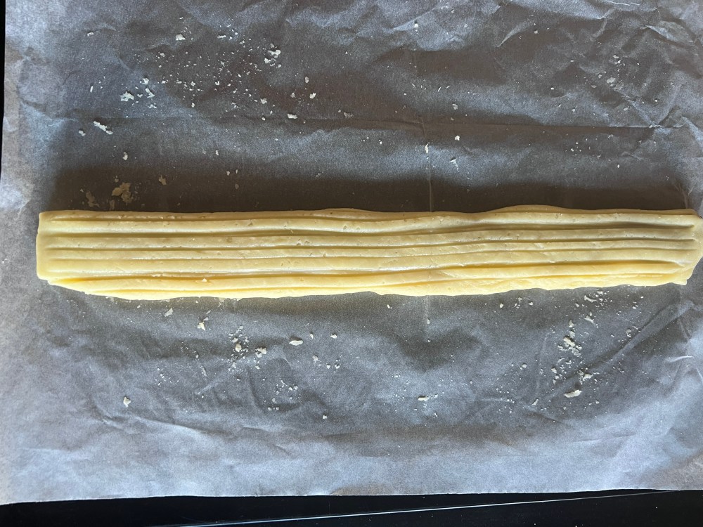 Sortir du four et couper immédiatement en morceau de 4 cm de longueur.