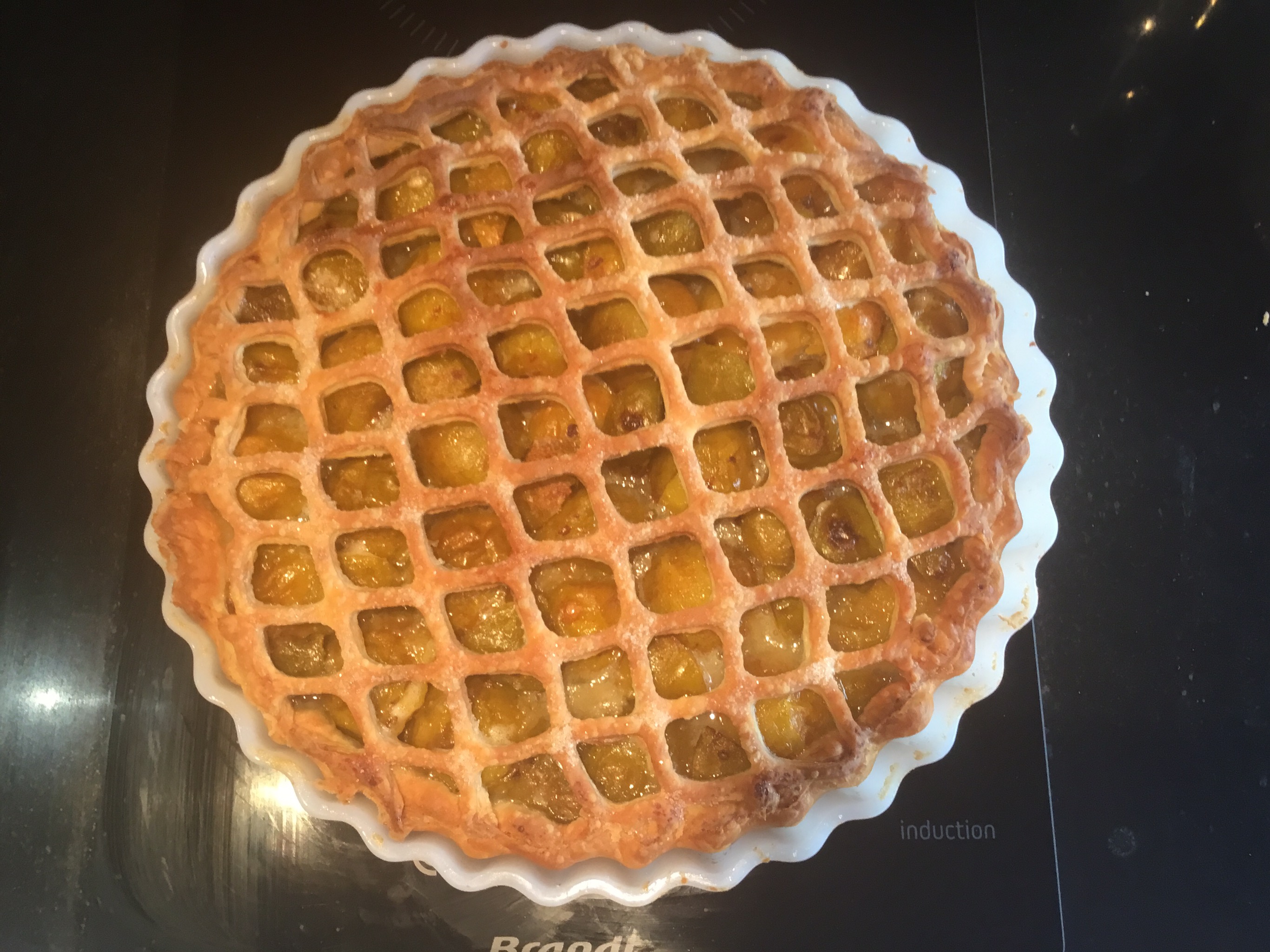 Abaisser les 50g de pâte restante et recouvrir le moule avec la pâte coupée en grille.