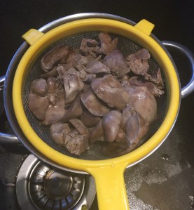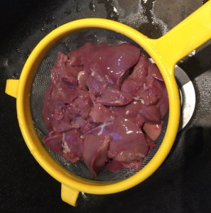 Verser les foies pochés dans une passoire et laisser refroidir un peu.