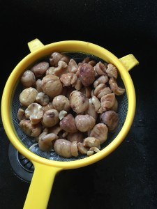 Pendant ce temps égoutter les marron et les passer au moulin à légumes grille fine, réserver.