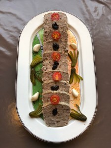 Vérifier l’assaisonnement et mettre dans une terrine ou un plat à cake, garni d’une crépinette en laissant de quoi recouvrir la viande.
