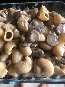 La cuisson des pâtes terminée (10 min) ajouter à la poêle contenant les champignons, une louche d’eau de cuisson des pâtes.