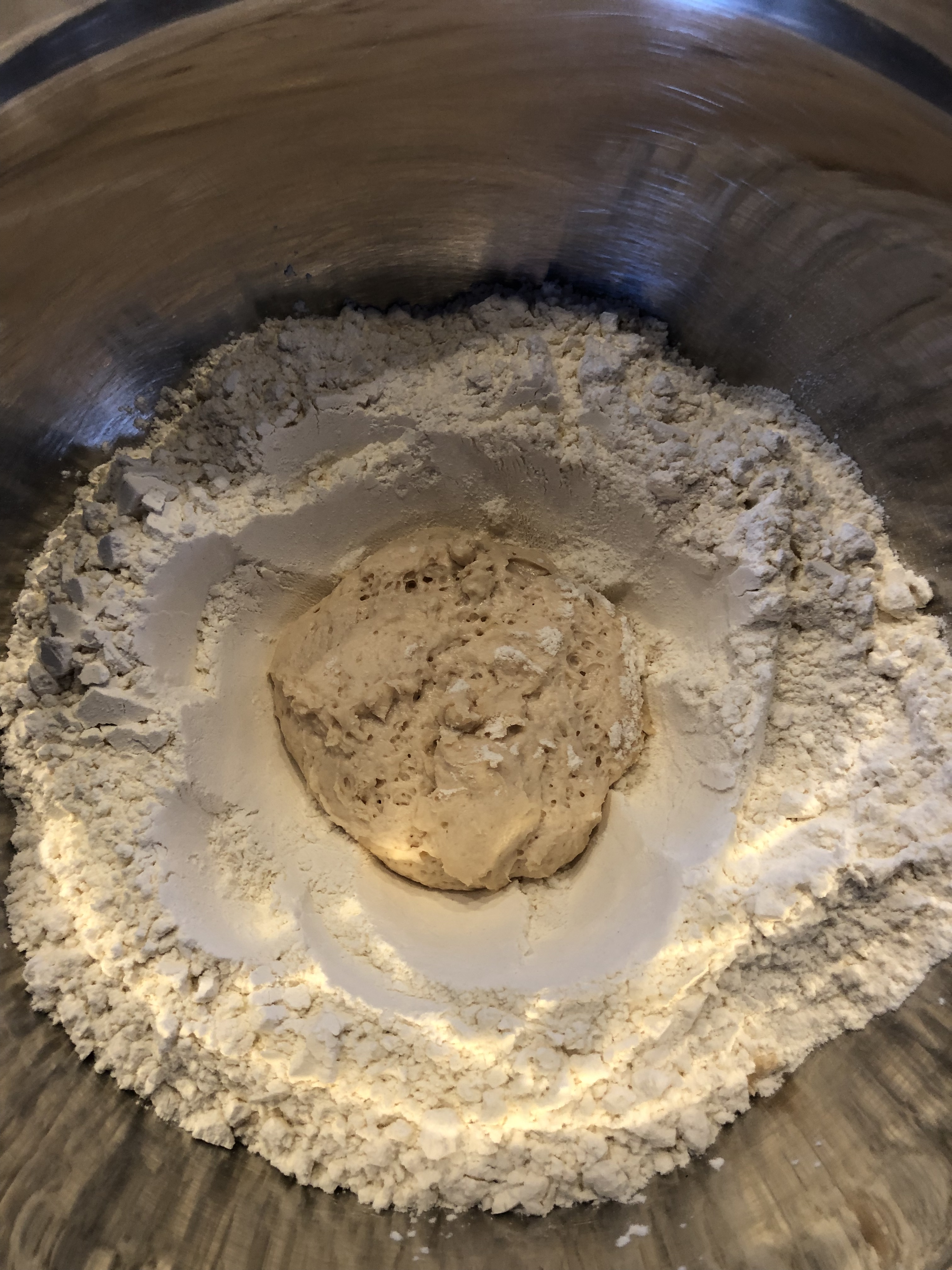 Ajouter le reste du lait à la farine et au levain.