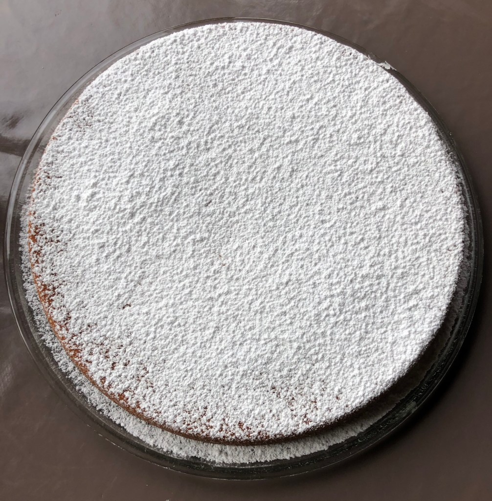 Démouler dans un plat plat et saupoudrer de sucre glace
