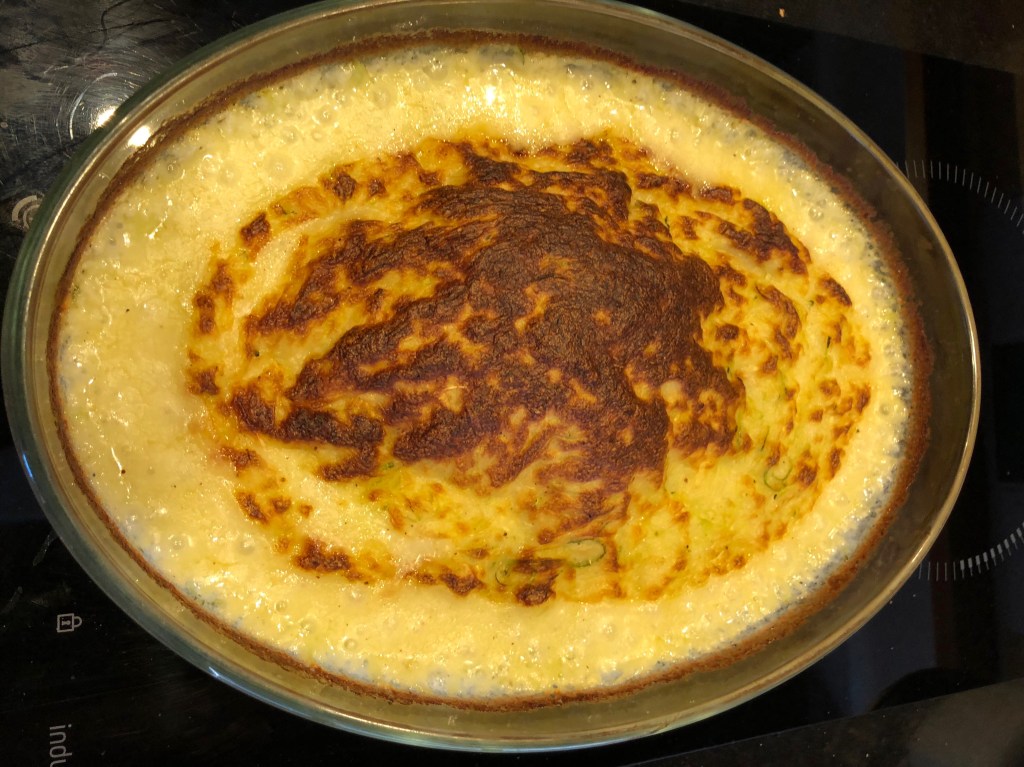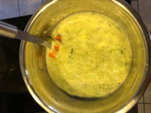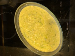 Dans une jatte, mettre la courgette cuite et la sauce Béchamel, bien mélanger, vérifier l’assaisonnement.