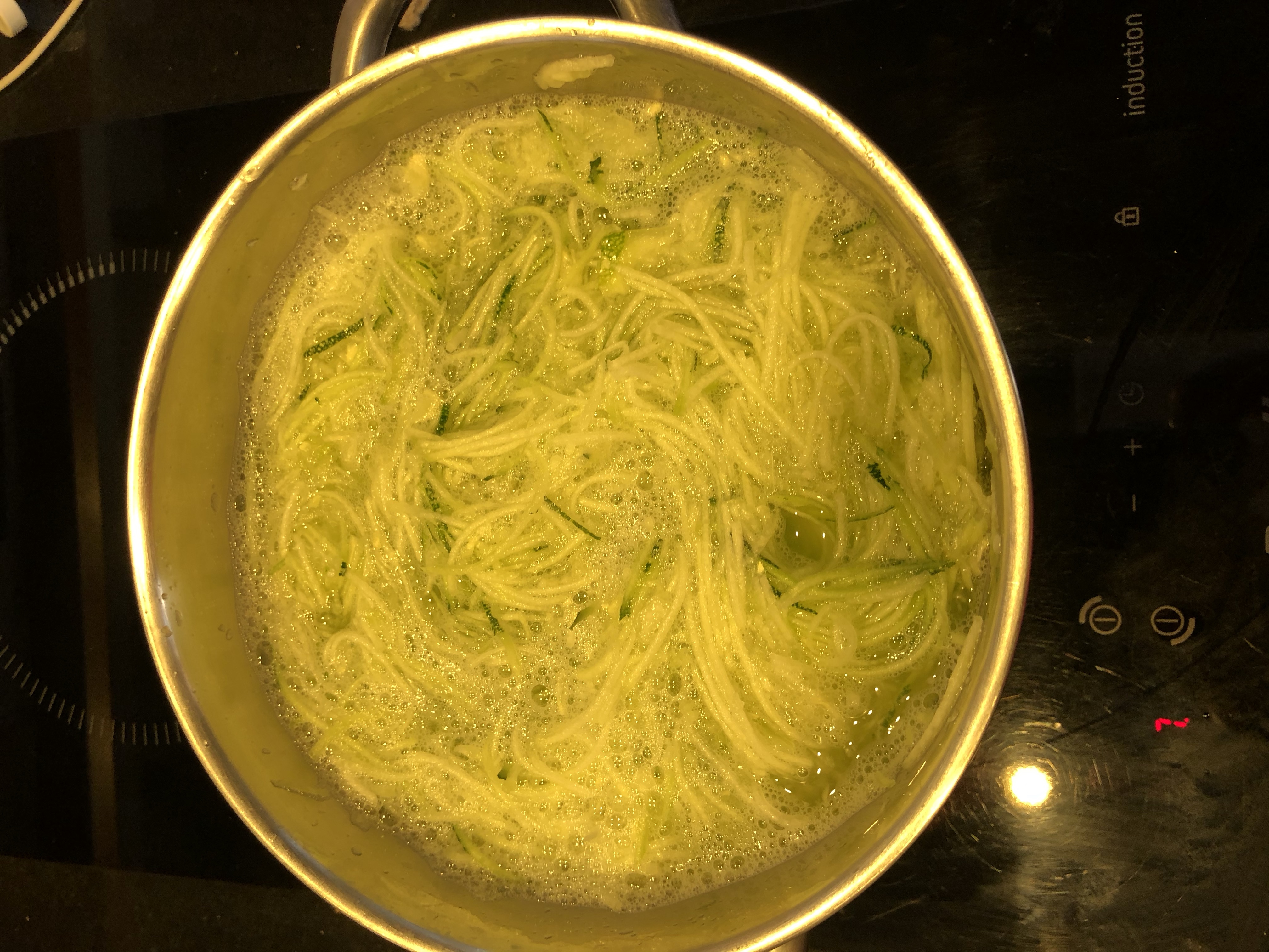 Râper les courgettes, et la mettre dans un faitout, recouvrir d’eau et porter à ébullition.