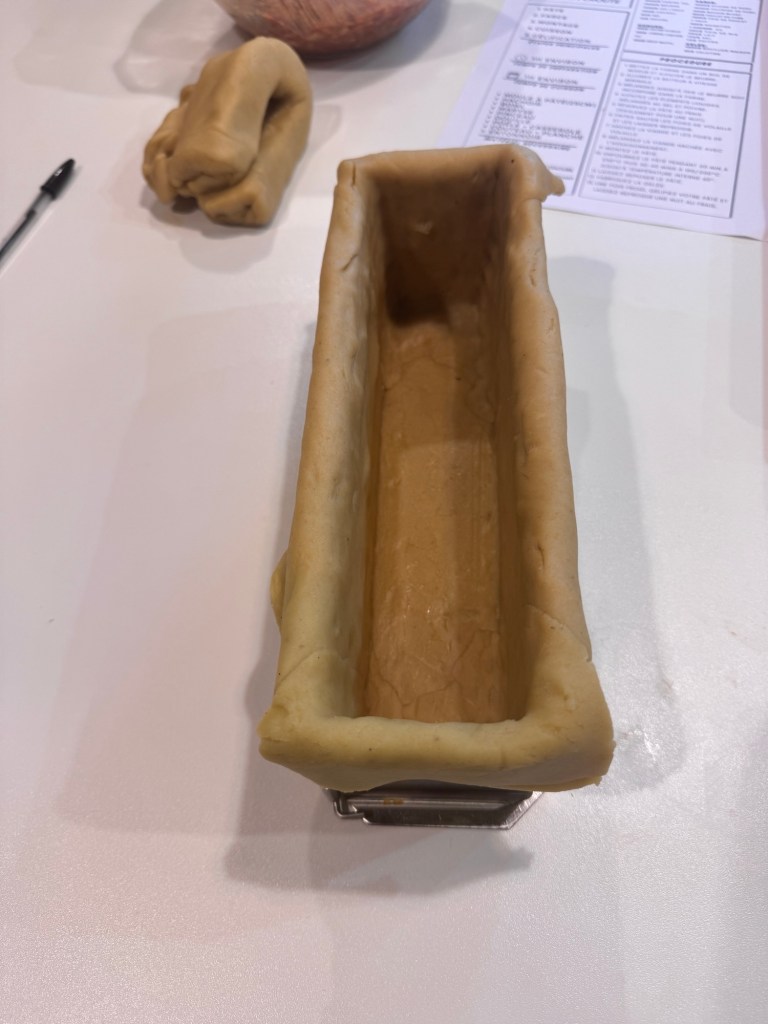 Chemisé le moule sans faire de trou pour éviter que le jus de cuisson s’ecoule.