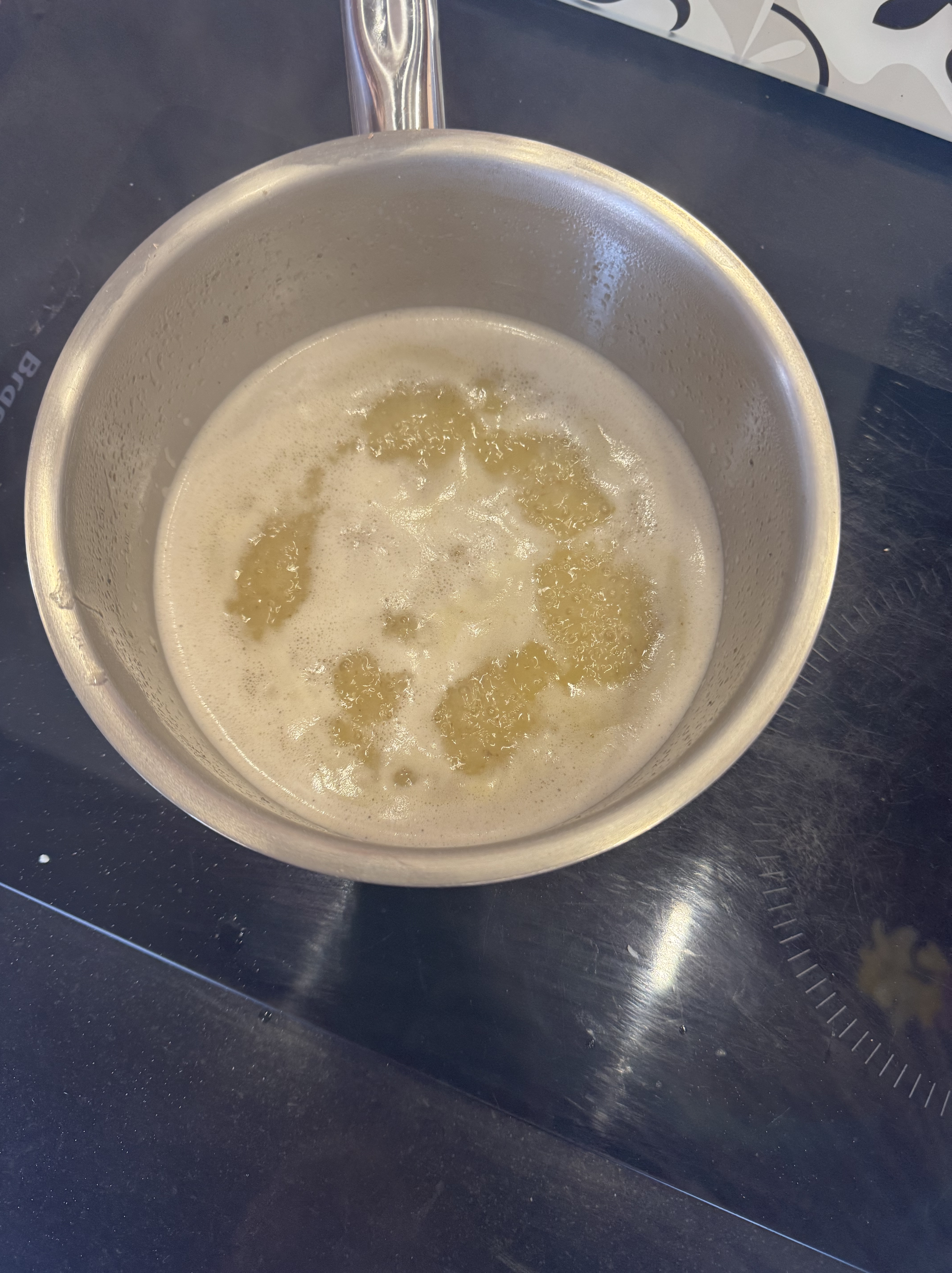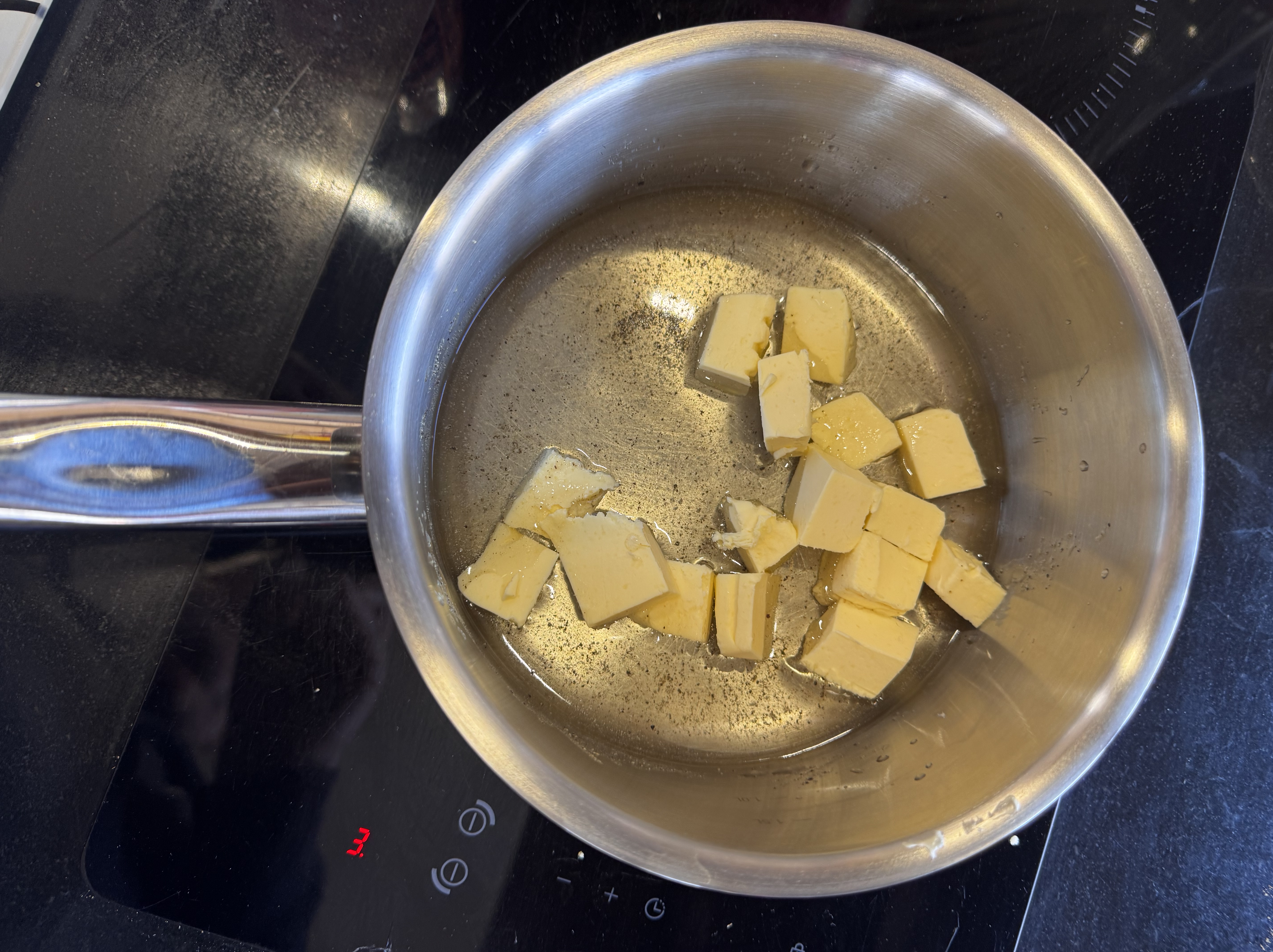 Mettez l’eau, le beurre et le sel dans une casserole et portez les à ébullition pour faire fondre le beurre.