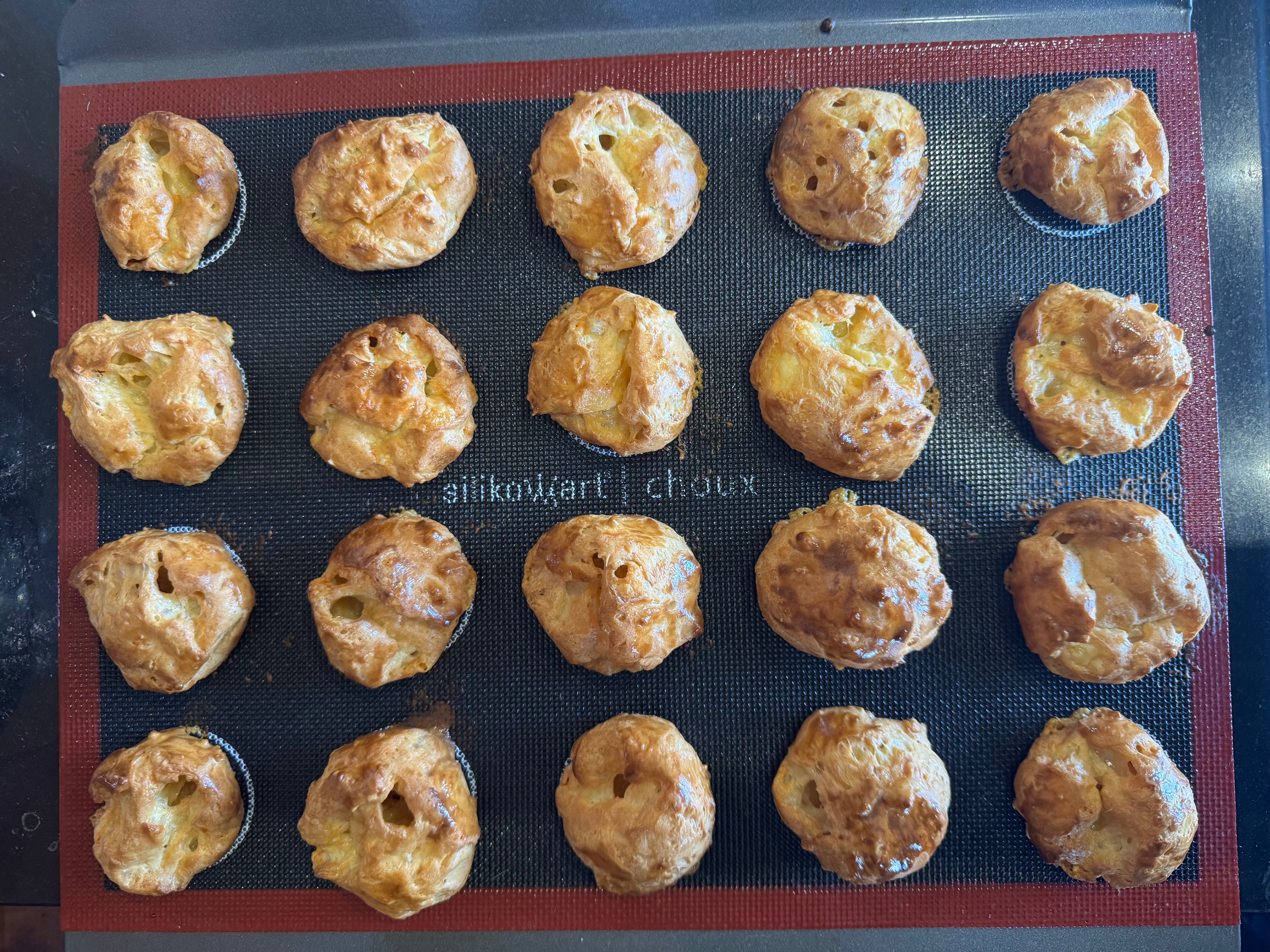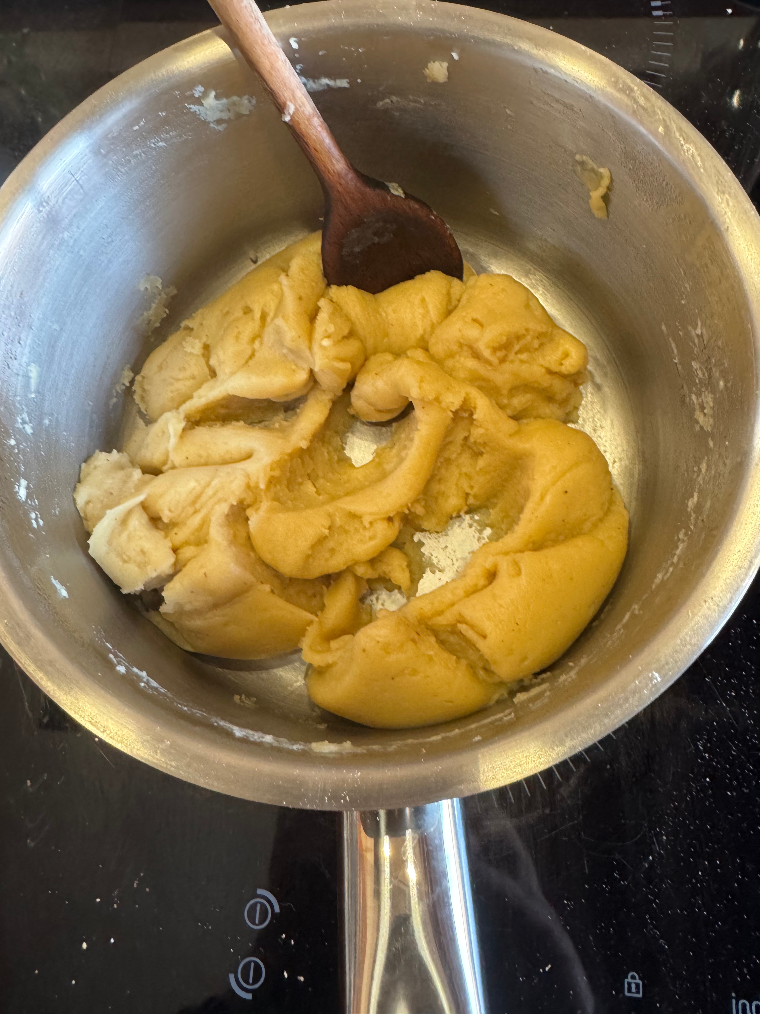 Pour des choux sucrés, ajoutez 1 cuil. à soupe de sucre à la pâte au point 1.