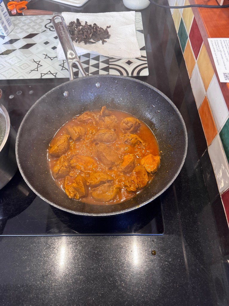 Ajouter la crème de coco et continuer la cuisson une trentaine de minutes à feu doux.